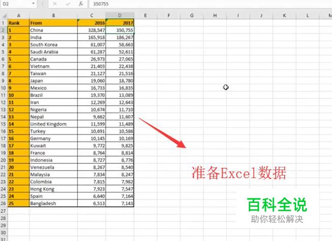 首先我们需要在Excel文件中准备好饼图的数据,如下图所示