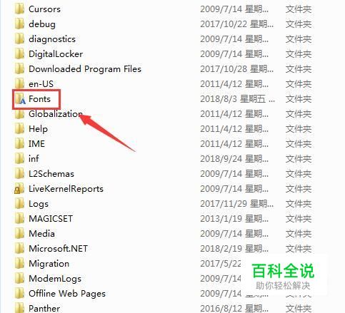 打开我们的电脑然后在里面找到Windows选项,点击该选项在其内找到fonts选项,如图所示: