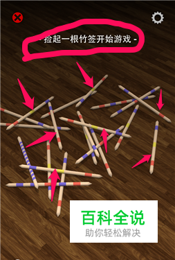 游戏开始,就把一根根竹签挑起来,在挑这跟竹签的时候,他的上面不能压有其他竹签。不然挑错就输了。 按照箭头指示一步一步来。
