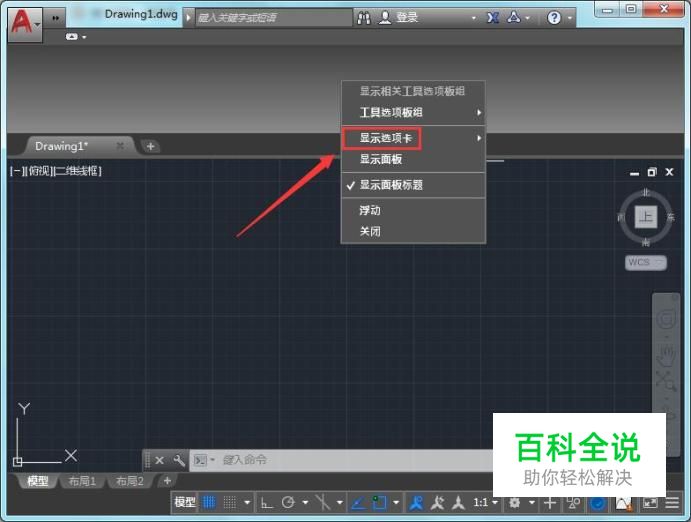 我们在上面单击鼠标右键在弹出的右键菜单哪里找到显示选项卡选项,如图所示: