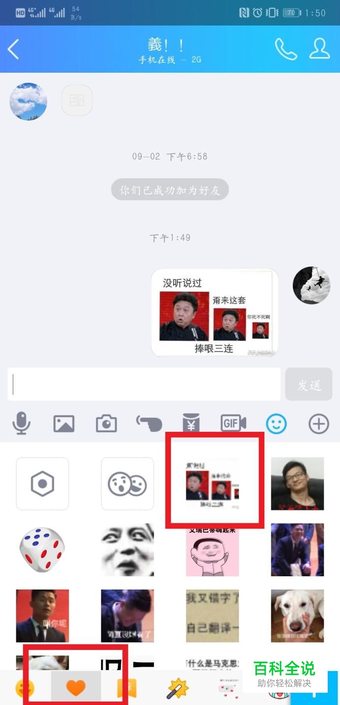 提示保存成功后,就可以在QQ表情包中找到刚刚存的表情了。之后在发送该表情包,就可以从QQ表情包中找到了。