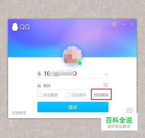 在QQ登陆面板中找到“找回密码”。