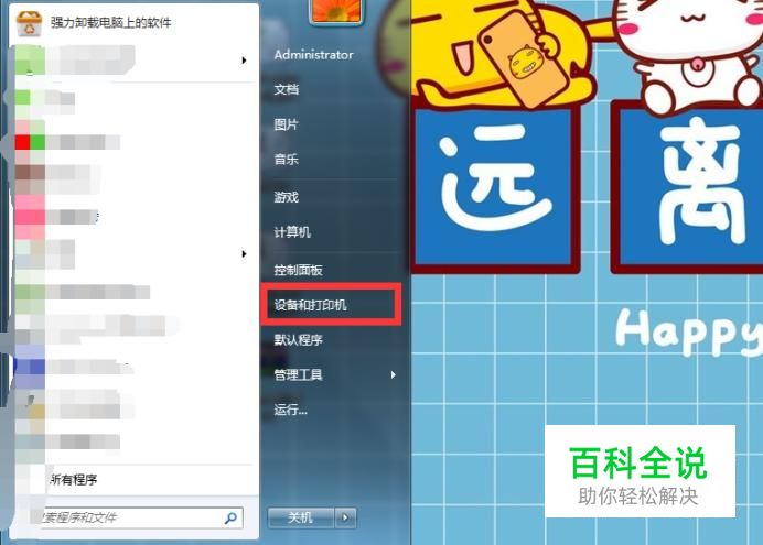 单击电脑“开始”,选择“设备和打印机”。