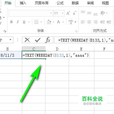 接着,我们在C133单元格输入:=TEXT(WEEKDAY(B133,1),"aaaa")