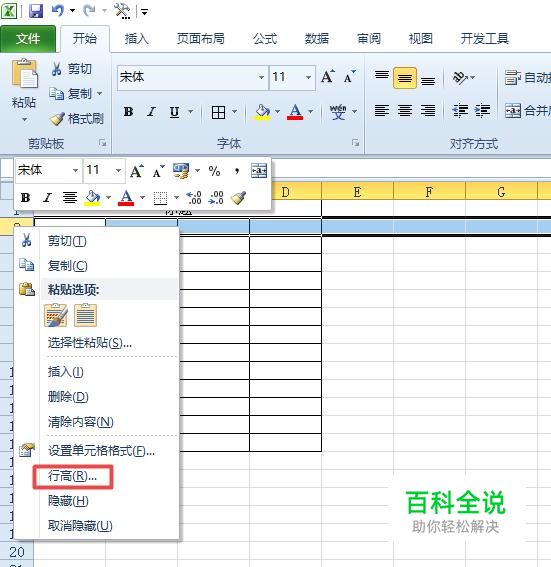 首先,我们打开我们电脑上面的一个excel文档,然后我们选中一行,之后我们右击选择行高;