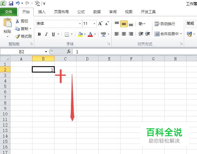 之后我们选中该单元格,然后将鼠标放在单元格的右下角,出现十字符号的时候,我们进行下拉;