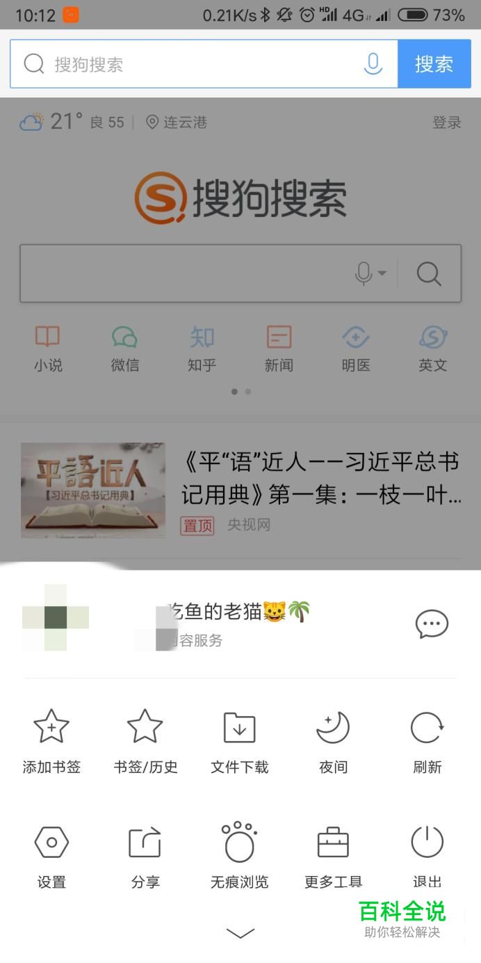 首先打开QQ浏览器,找到自己想要创建快捷方式的网页,比如说搜狗网页,然后点击中间设置键,点击添加标签;