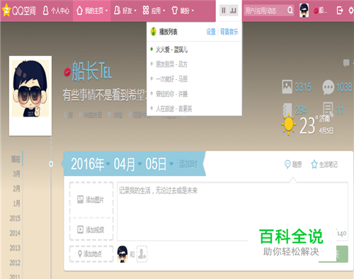 我们进别人空间有时会听到空间播放的背景音乐,如何在自己的空间添加自己喜欢的歌曲作为背景音乐呢。其实很简单,一种是QQ的绿钻业务,可以添加。而我们一般又不想为了单纯的添加一个背景音乐开通这种付费业务。但QQ其实提供了免费添加音乐的功能。下面我就来给大家分享下如何免费添加空间背景音乐。