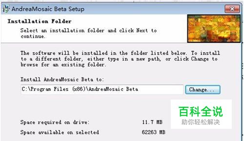 首先我们需要下载一个软件,软件的名字叫“AndreaMosaic”。软件只有大概12M,从网上下载之后进行安装。安装的过程我就不细说了,基本上是一直按“Next”即可。在这一步可以选择安装的位置,选择完毕之后点击“Next”。
