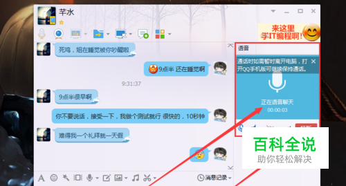对方接受邀请,“正在语音聊天”,现在你可以跟你的好友,进行语音聊天了哦。