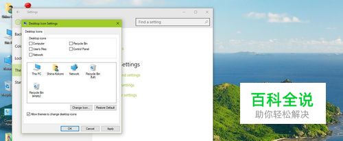首先通过设置-个性化-主题,把win10系统桌面的全部图标前的勾去掉,并按确定。(如果不这样的话会导致变换不完全)