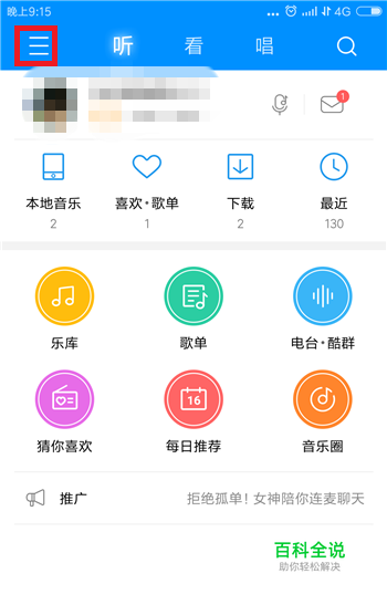 打开手机中的酷狗,进入酷狗APP后点击左上角的【三】按钮。