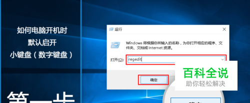 首先按" win+R"启动打开” 运行“,弹出运行窗口后输入” regedit“ 按” 确定“