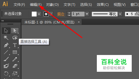然后打开AI软件的界面,在菜单栏上找到编辑,如图所示