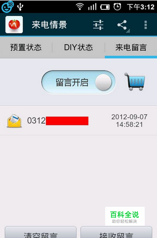 二、若有急事请您留言如果对方有急事,我们也可以让对方在电话中留言加以说明,以免延误。这需要先给某好友发送一条推荐短信,开通“来电留言”功能,而一个短信可获取10条来电留言的使用权限。从主界面点击“来电留言”按钮,把屏幕中的滑块切换到“留言开启”状态便可完成。这实际把手机变成了自动答录机,可以和情景配合使用。此后当朋友打入电话时,除了会听到预先设置的自动应答外,便会听到“请在提示音进行留言”提示。当对方留言后,也会发送到你的手机上,你只要在界面点击“接收留言”选项打开留言列表,选中留言后,再点击“播放”按钮,便能听到对方留言(图2)。
