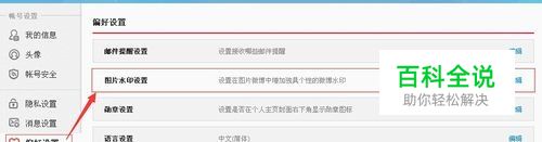在账号设置界面中,选择偏好设置中的图片水印设置