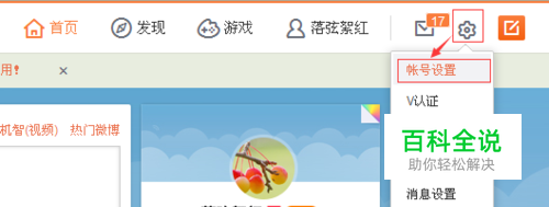 登陆微博,点击登录名旁边的设置图标下的账号设置