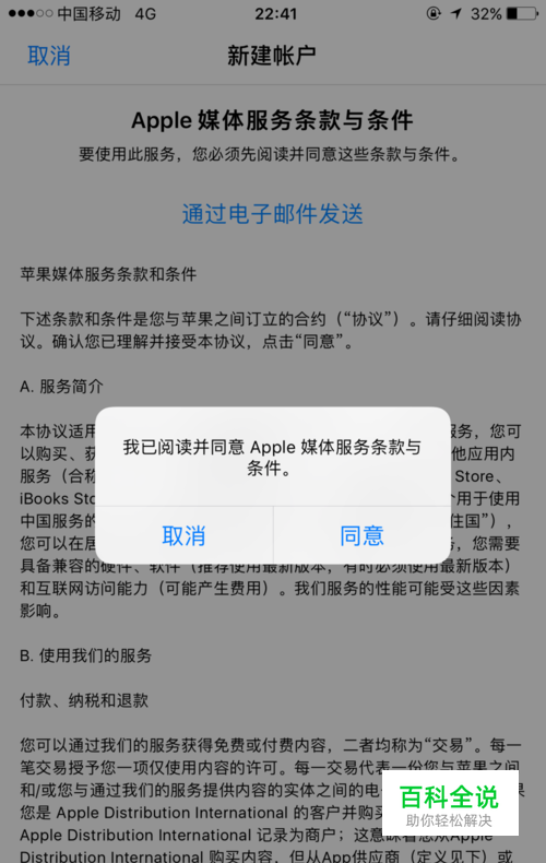 根据提示,选择“同意”iTunes Store的条款与条件;