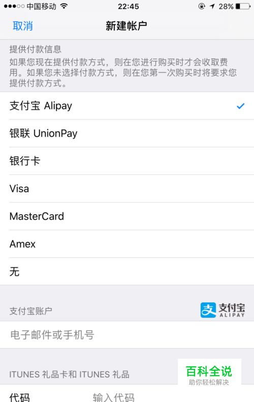 在付款信息中,可以选择“无”,这样就不用绑定银行卡、信用卡、支付宝,点击“下一步”