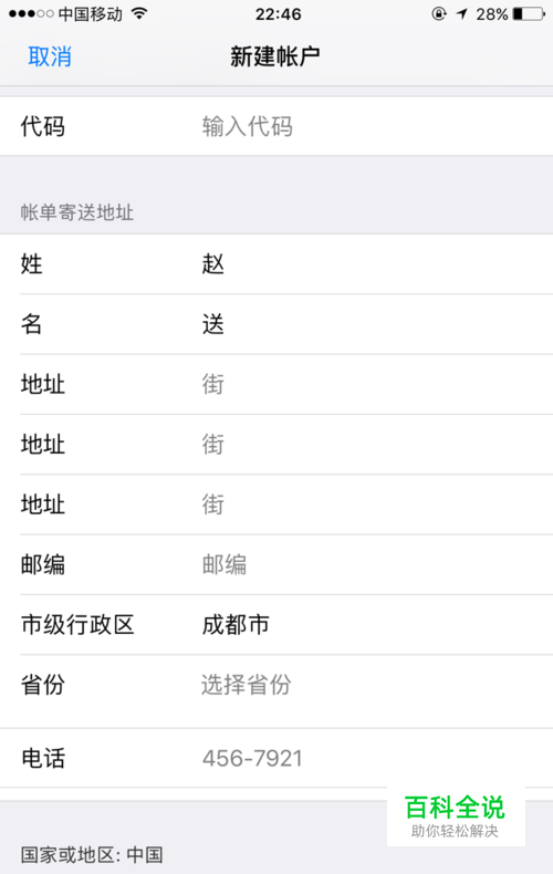 然后填写相关的账单地址(随便填一个假地址也可以),点击“下一步”