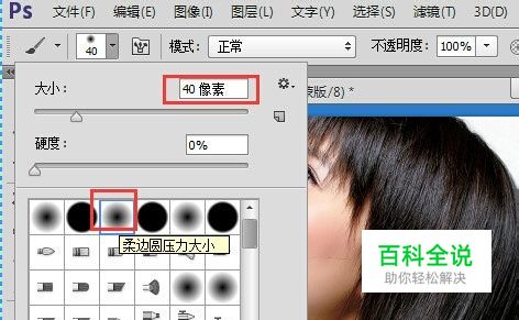 选择“画笔”工具,同时点击“画笔样式”下拉列表,从中选择一种边缘柔和的画笔样式。