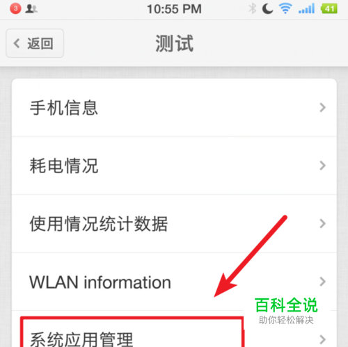 在锤子手机的测试模式下,我们选择最下方的“系统应用管理”的选项进入。