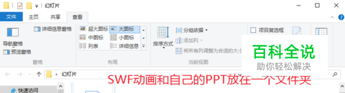 首先我们最好 把自己的PPT和要插入的SWF格式FLASH动画放在一个文件夹。