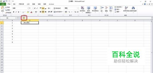 我们先来求A1-A8几个数字的和。 鼠标点击B1,然后点击”fx“插入函数。