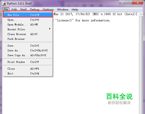 在菜单栏中,单击“file”选中“new file”,如图所示。