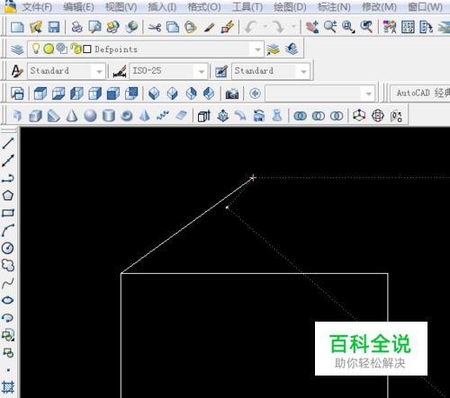 然后以矩形的左上角的端点为起点画一条斜的线段,如下图所示,线段的长度可以自定义或者根据要求定义。