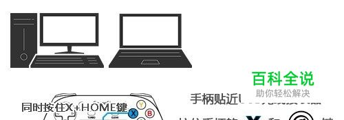 b.手柄贴近USB无线接收器,同时按住手柄的【X】和【HOME】键2秒开机,【X指示灯】进入闪烁状态;连接成功后手柄会震动,【X指示灯】呈常亮状态。