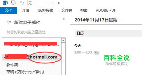 在outlook里添加账户,此处使用Hotmail邮箱作为日历同步账户,具体步骤不赘述