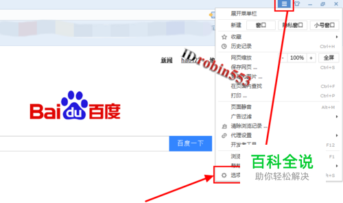打开搜狗浏览器,点击右上角的菜单图标,弹出下拉菜单,点击下拉菜单中的“选项”。