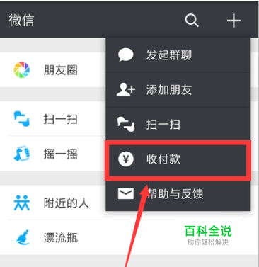 第一步,打开微信,点击右上角加号,点击收付款功能。