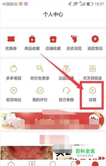 在个人中心属性栏中,找到设置选项打开,如图所示