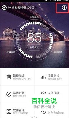 点击“360手机卫士”主界面下方的上拉按钮。