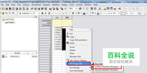 首先,打开Origin8.5,填充两组长度为10随机数据,方法使用之前我经验中写到的“OriginPro8.5如何自动填充数据?”