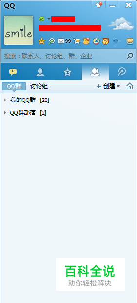 打开QQ面板,选择QQ群,然后点QQ群上边的向下的小三角形