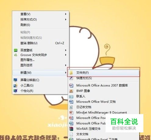 在桌面,右键点击鼠标,出现一个弹窗。选择“新建”按鼠标左键。