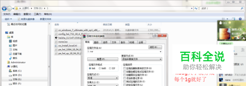 2.选择你要复制的文件 (比如我要复制这个安装系统的文件,先左键选住这几个文件,然后右键选择{添加到压缩文件(A)},会弹出这个界面,按图操作即可。