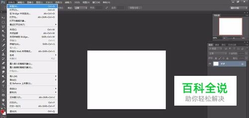 打开ps软件,“文件--新建”,新建适当大小白色背景文件,如下图所示: