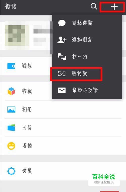在手机登录了微信账号之后,在首页点击右下角的【 我】再点击右上角的【 +号】然后在弹出的小窗口点击【 收付款】。