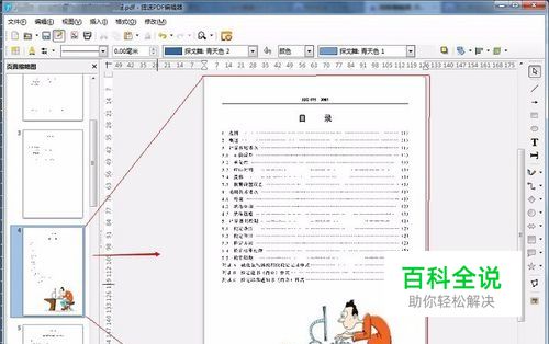 首先用PDF编辑工具打开文档,用缩略图来切换页面,找到需要保存的图片所在页面。
