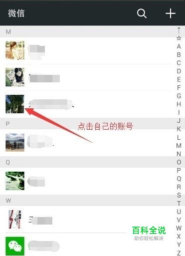 在首页中点击底部的通讯录,打开页面通讯录页面。并且在页面中找到自己的账号并点击。