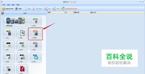 打开格式工厂软件,因为原视频文件是RMVB格式的,这是我并不想转格式,所以单击[->RMVB],如果想同时转换为其它格式可以单击相应的按钮
