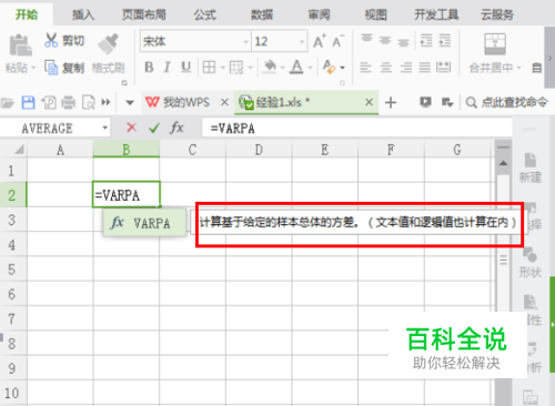计算方差需要用到VARPA函数(如图);
