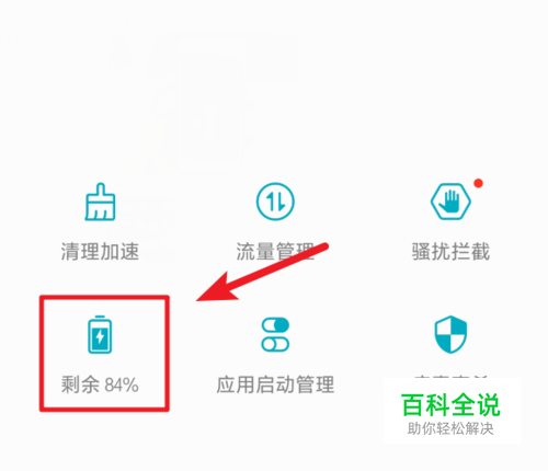 点击进入手机管家后,我们选择下方的电量剩余的图标,进入到电池的管理界面。