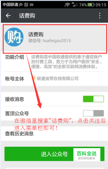 首先在手机各应用商店/APPstore搜索“话费购”APP并进行下载,或者直接关注“话费购微信公众号”即可进行相关操作;