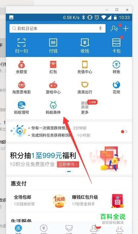 首先打开我们的支付宝,然后在支付宝的首页中找到蚂蚁森林,这里如果你没有在首页就点击更多查找蚂蚁森林