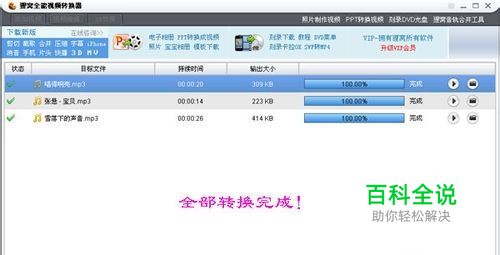 通常狸.窝全能视频转换器转换音频文件的速度是非常快速的,一首歌曲只需要短短的几秒即可完成输出。